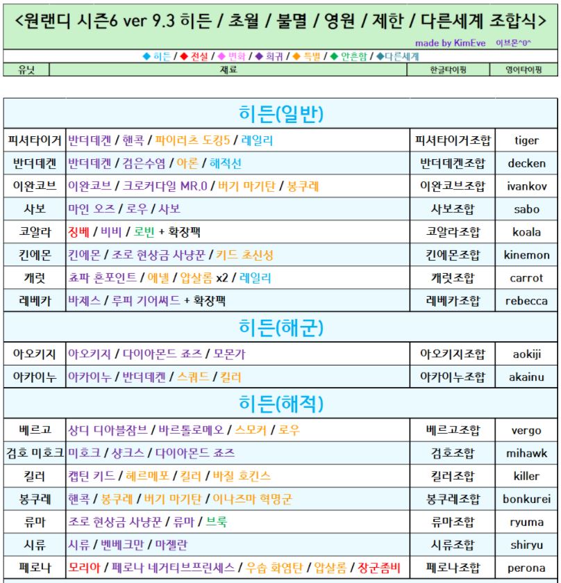 | 원랜디 10.5 히든조합 및 조합도우미 (0) | 2021.11.30 |