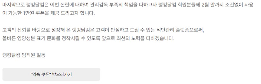랭킹닭컴측에서는 이번 사안에 엄중한 책임감을 느끼며 동일한