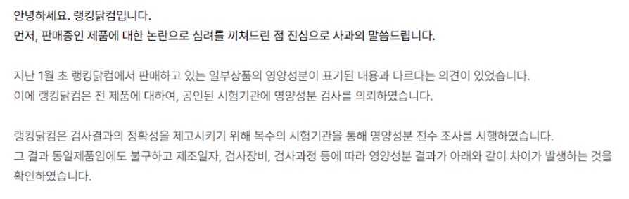 지난 1월에 랭킹닭컴 닭 가슴살 소시지 영양성분 논란이 있었어요