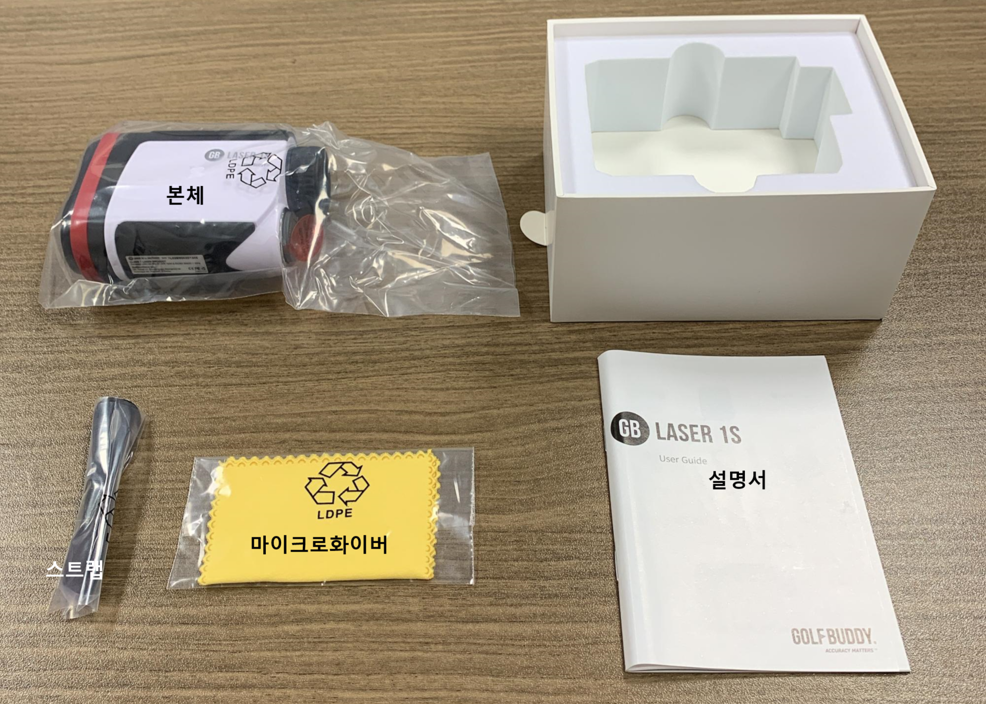 "GB LASR 1S + 파우치 + 건전지" 구성입니다.