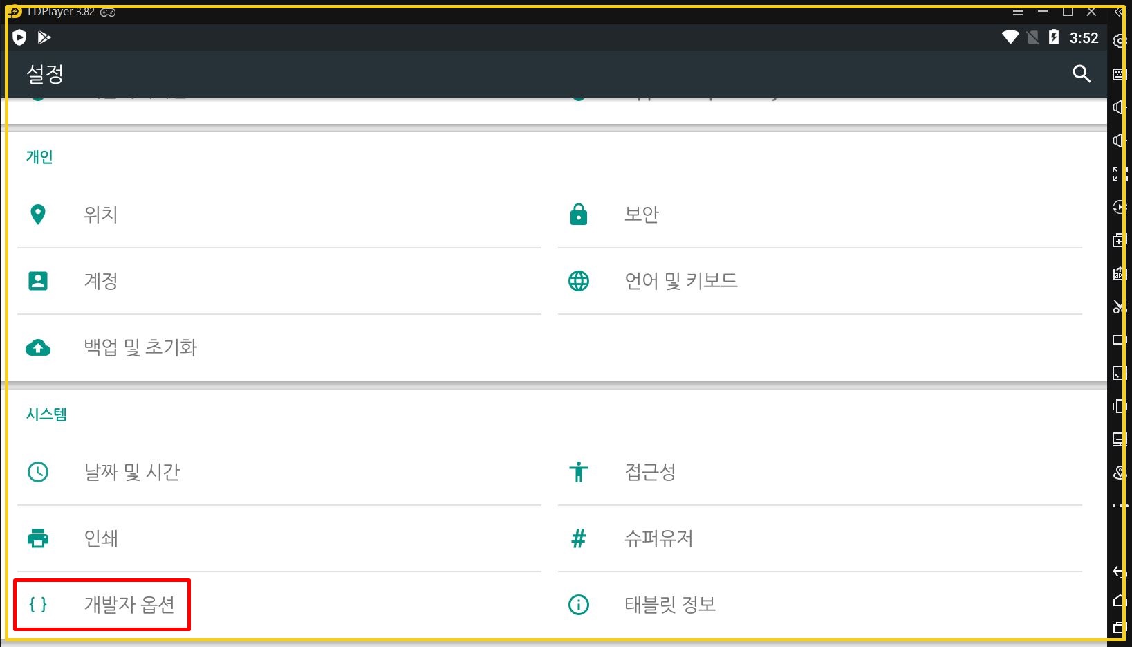 개발자옵션이라는 항목이 생겨났을 겁니다.