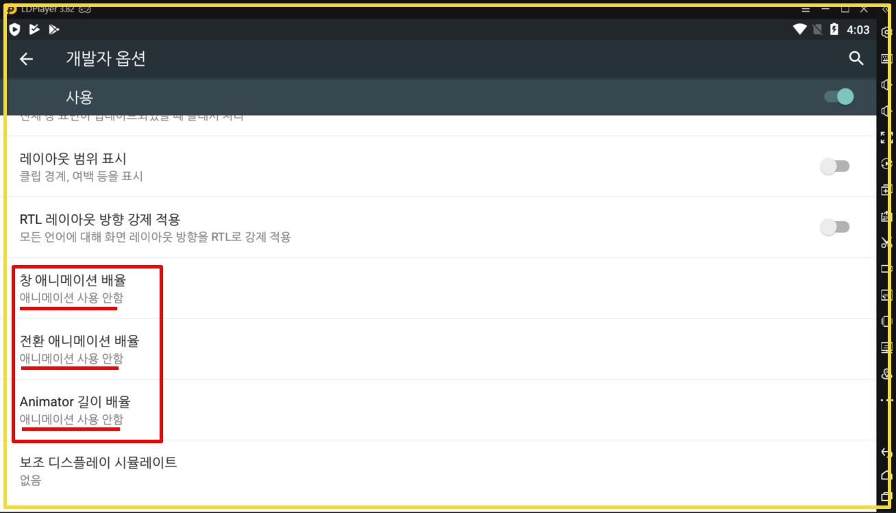 6. 애니메이션 사용 안 함 설정