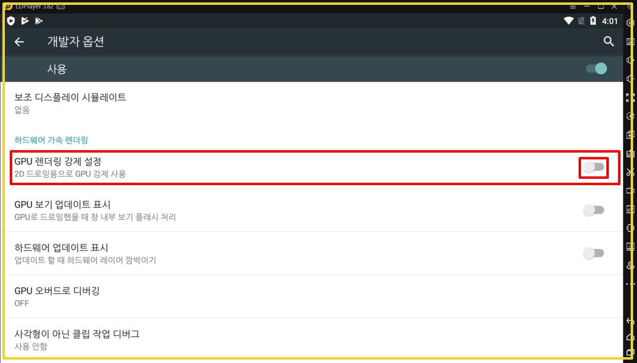 7. GPU 렌더링 강제 설정